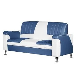 Studio Monroe CanapĂ© panoramique Nixa (3 -2 -1) – Cuir synthĂ©tique – Blanc / Bleu foncĂ©