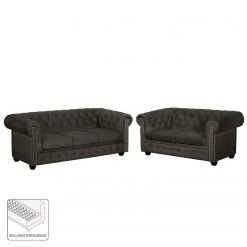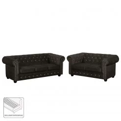 Loftscape Ensemble de canapĂ©s Glenhaven (3 Ă©lĂ©m.) – Velours – Marron foncĂ©