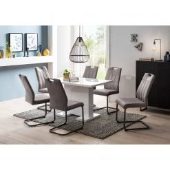 Loftscape Salle à manger Baris (5 éléments) – Extensible – Blanc / Gris