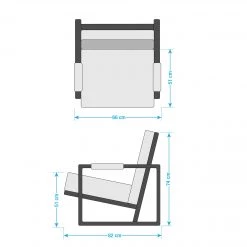 - Fauteuil (largeur x hauteur x profondeur) : 66 x 74 x 82 cm