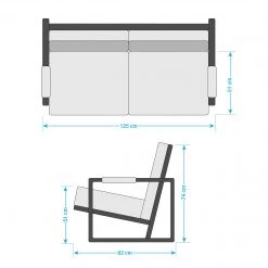- Canapé 2 places (largeur x hauteur x profondeur) : 125 x 74 x 92 cm
