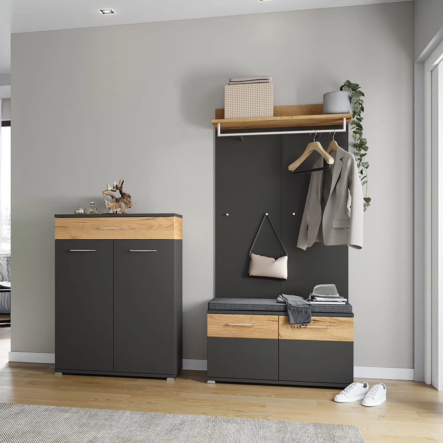 - Contenu de la livraison : Ensemble d’entrée comprenant 1 porte-manteau mural, 1 banc avec coussin et 1 meuble à chaussures, sans accessoires