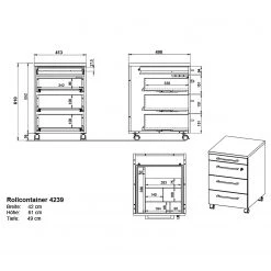- Caisson à roulettes : 42 x 61 x 49 cm