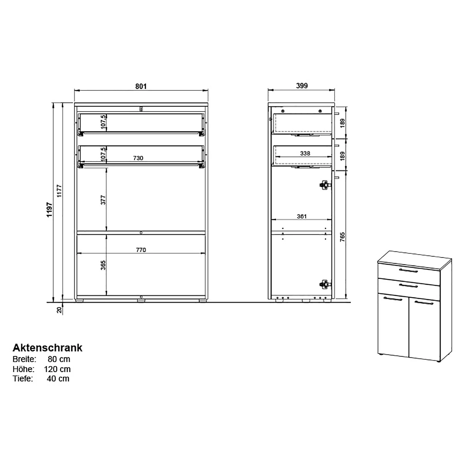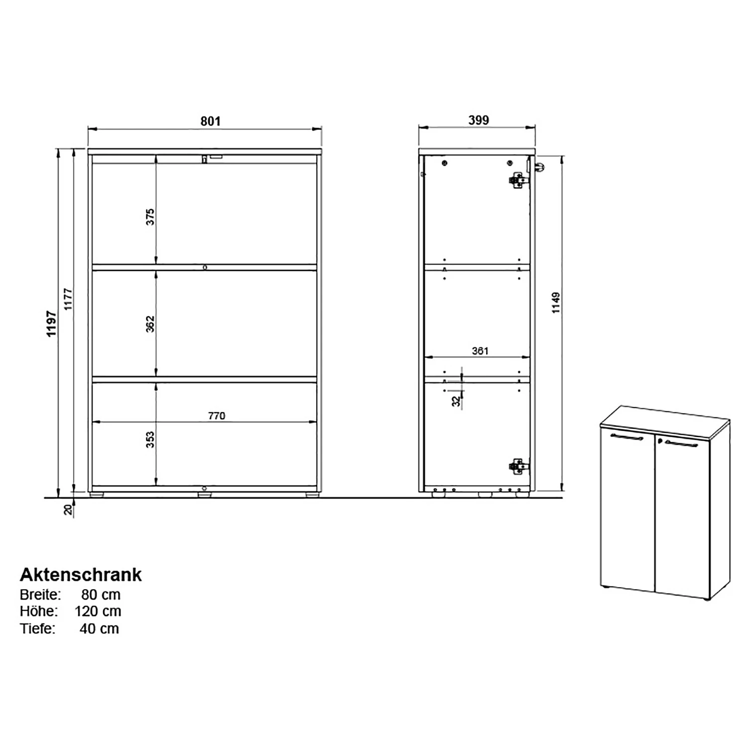 - Armoire de bureau : 80 x 120 x 40 cm chaque