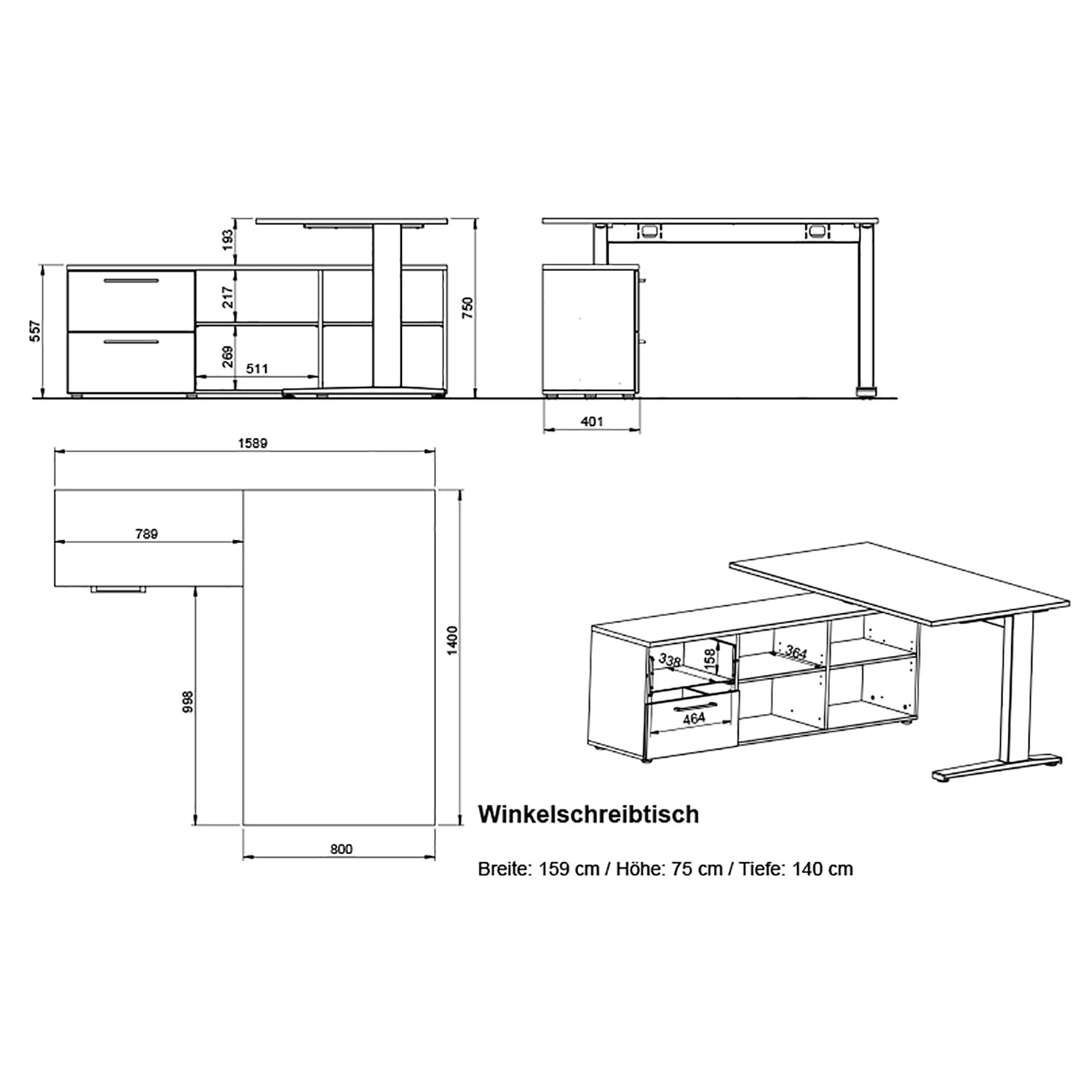 - Bureau d’angle : 140 x 75 x 159 chaque cm