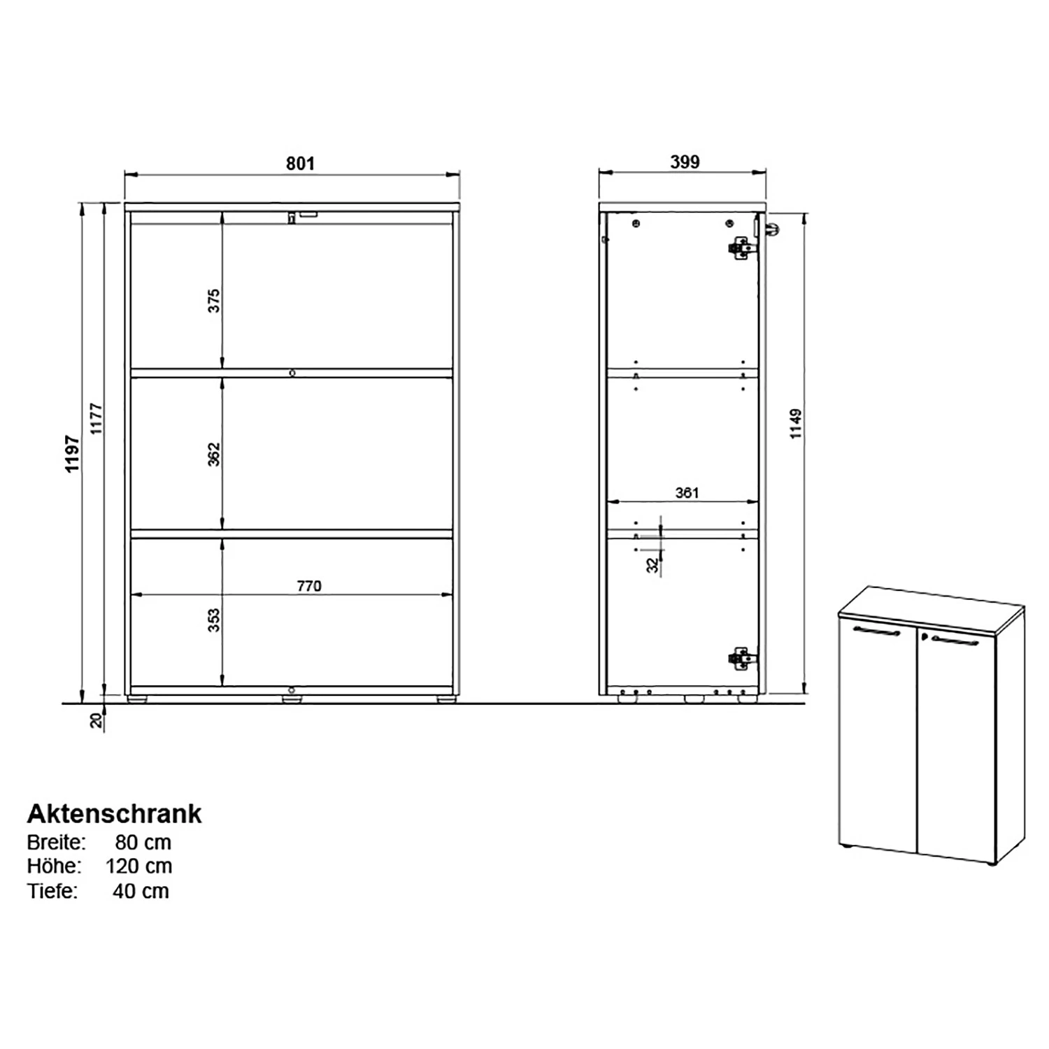 - Armoire de bureau : 80 x 120 x 40 cm chaque