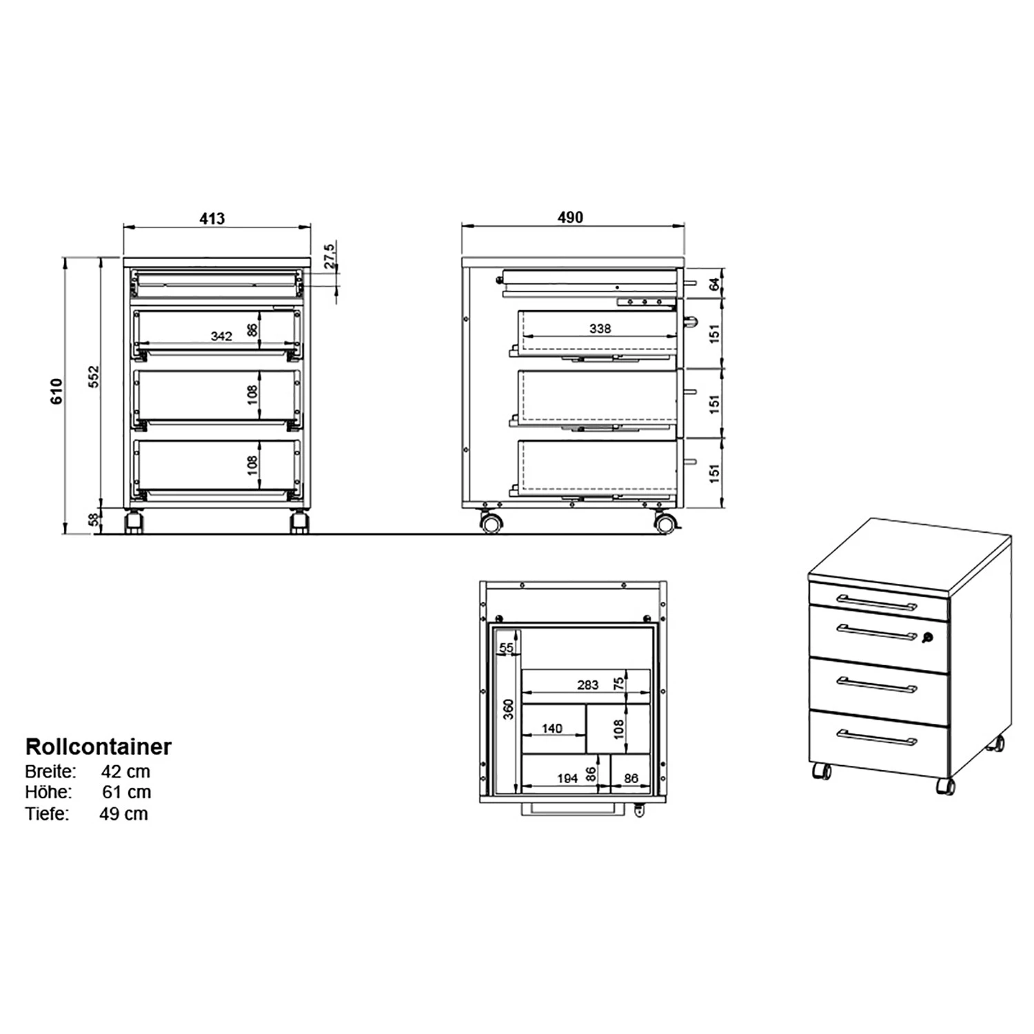 - Caisson à roulettes : 42 x 61 x 49 chaque cm