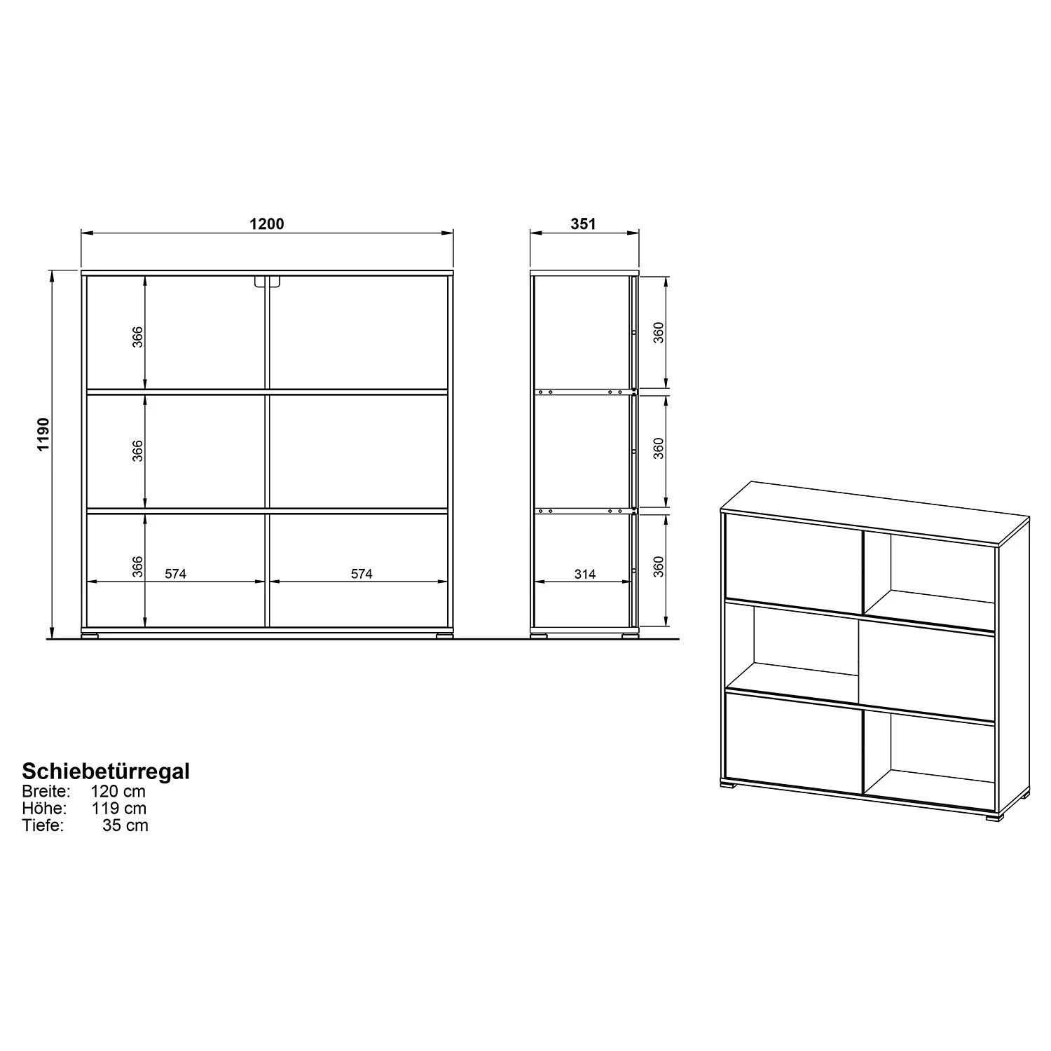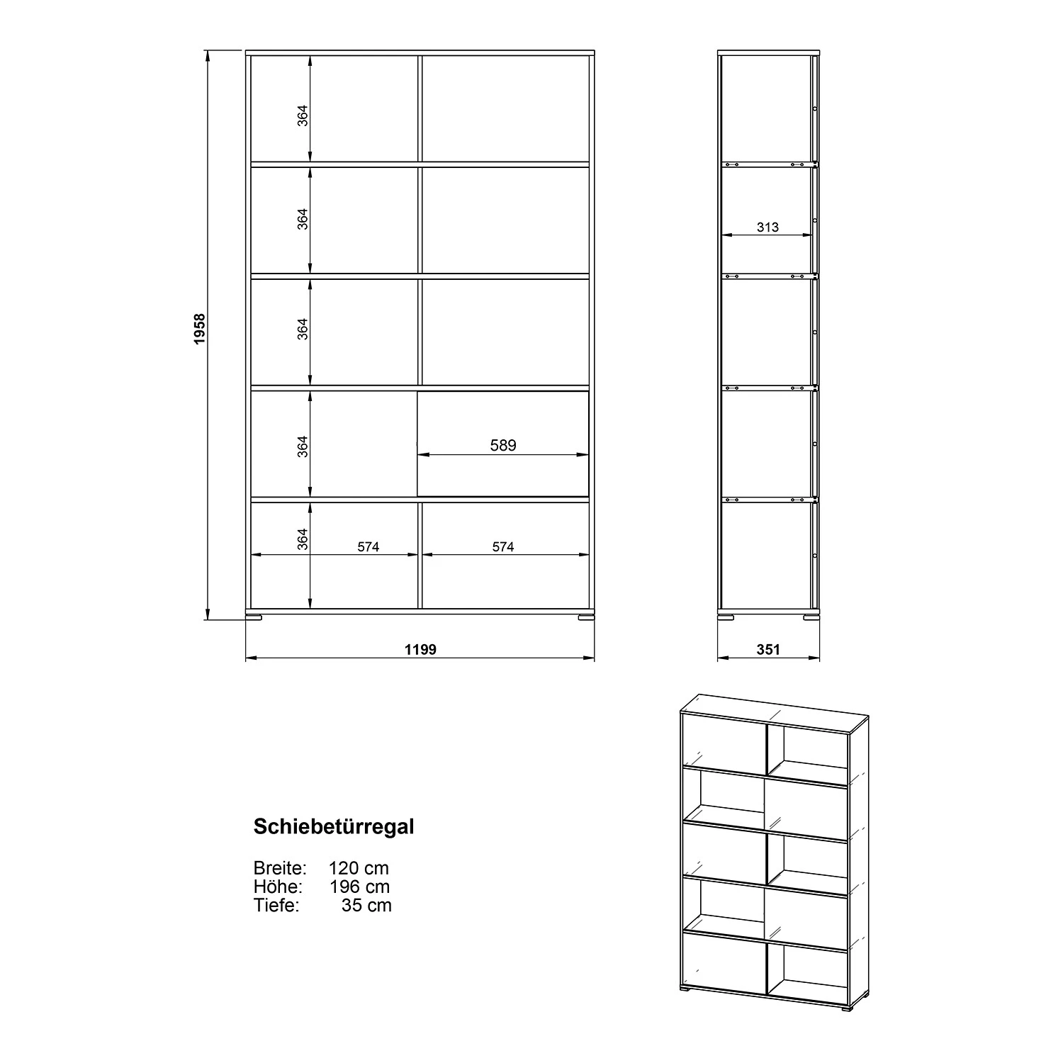 - Grande étagère à porte coulissante : 120 x 196 x 35 cm