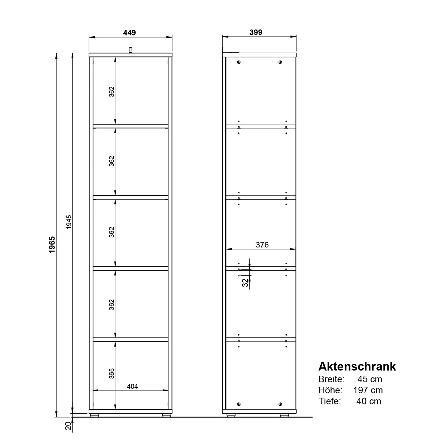 - Grande étagère de bureau : 45 x 197 x 40 cm chaque