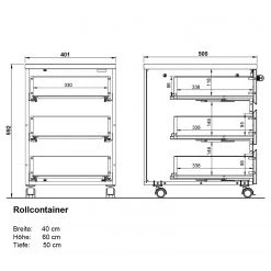 - Caisson de bureau : 41 x 60 x 50 cm chaque