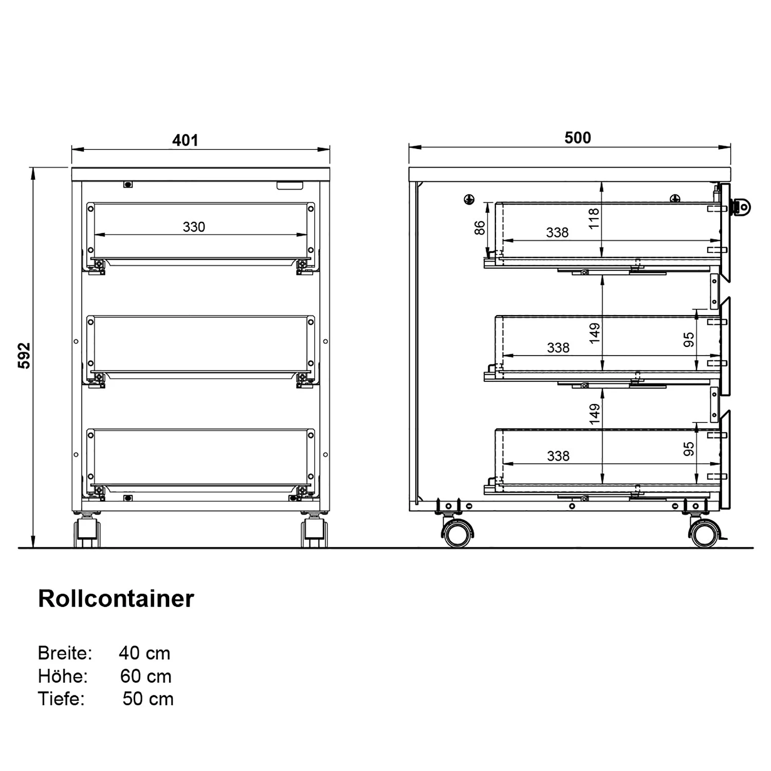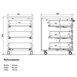 - Caisson de bureau : 41 x 60 x 50 cm chaque