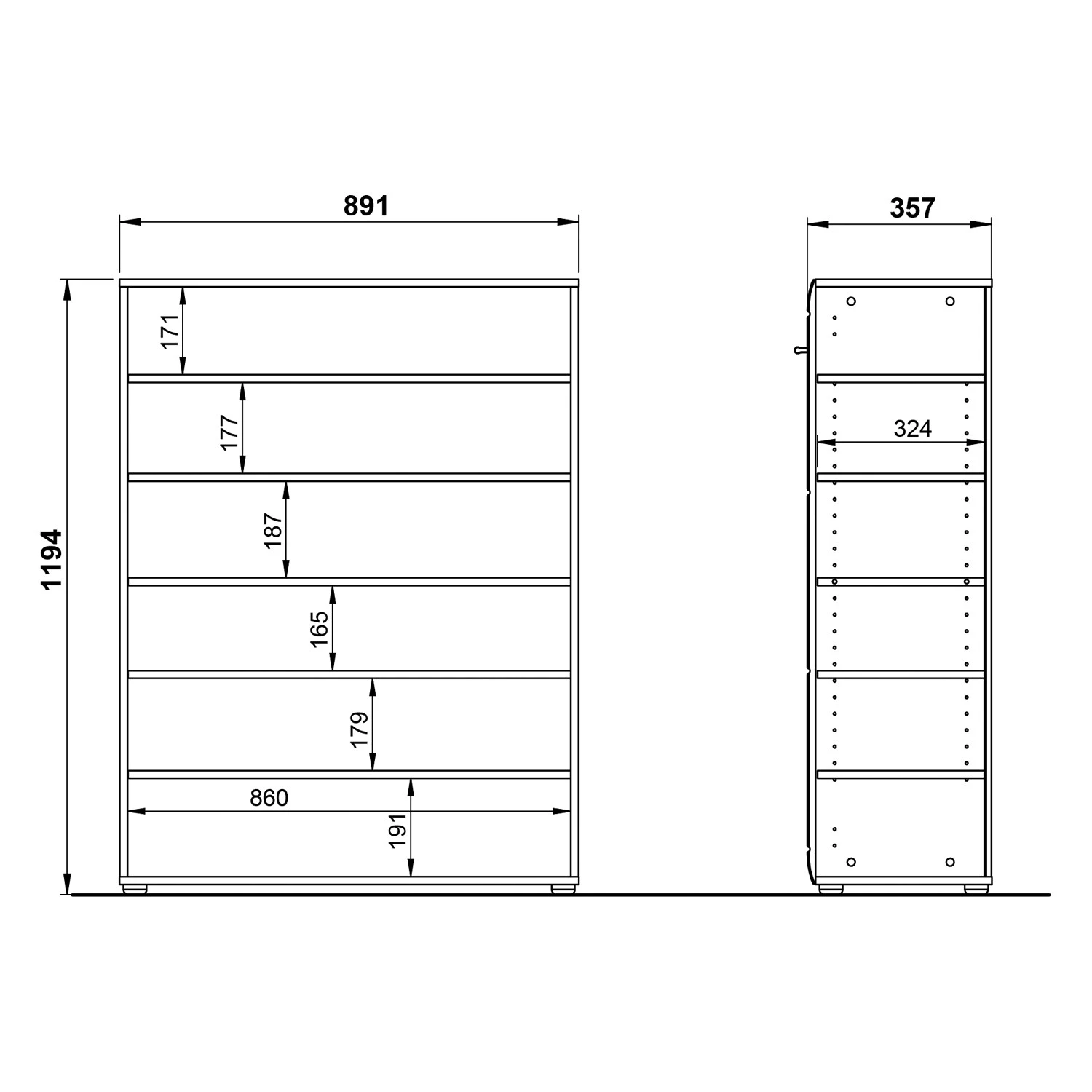 - Compartiment derrière la porte (sans étagère) : 86 x 114,5 x 32,4 cm