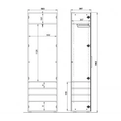 - Armoire : 59 x 197 x 40 cm (L x H x P)
