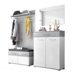 - Contenu de la livraison : 1 porte-manteaux mural, 1 banc d’entrée avec coussin, 1 miroir et 1 meuble à chaussures, sans accessoires