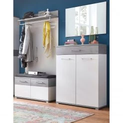 - Contenu de la livraison : 1 porte-manteaux mural, 1 banc d’entrée avec coussin, 1 miroir et 1 meuble à chaussures, sans accessoires