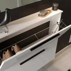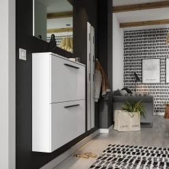 - Contenu de la livraison : Ensemble d’entrée comprenant 1 miroir, 1 meuble à chaussures et 1 porte-manteau mural, sans accessoires