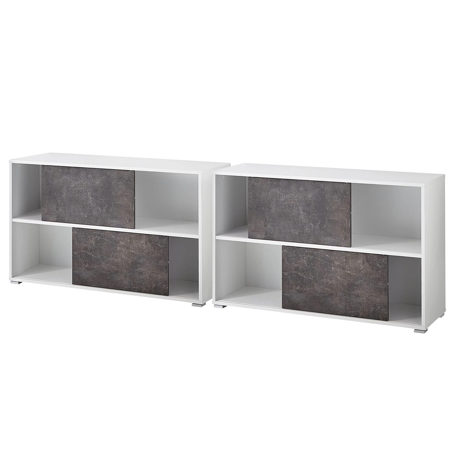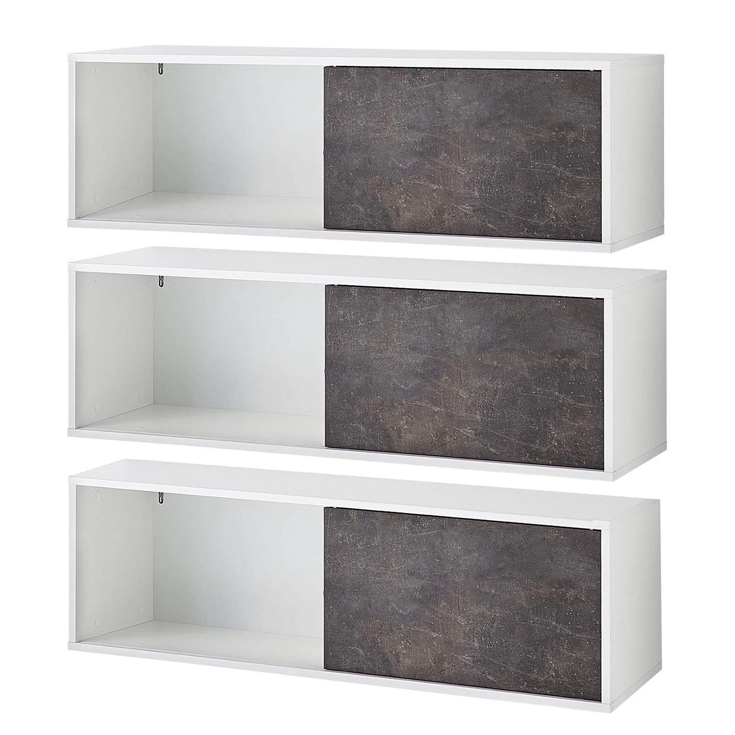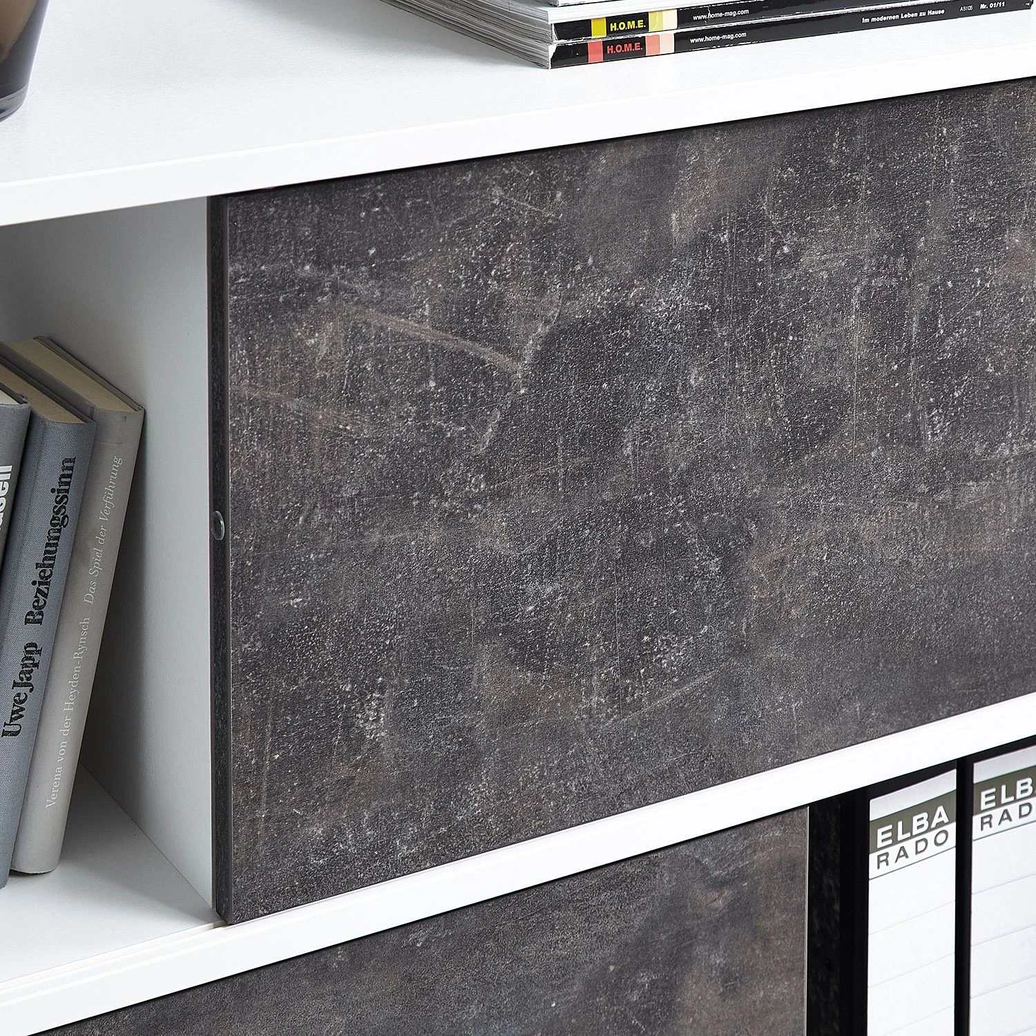 - Contenu de la livraison : Ensemble de bureau 7 éléments comprenant 1 bureau, 1 caisson de bureau et 5 étagères à portes coulissantes, sans accessoires
