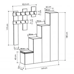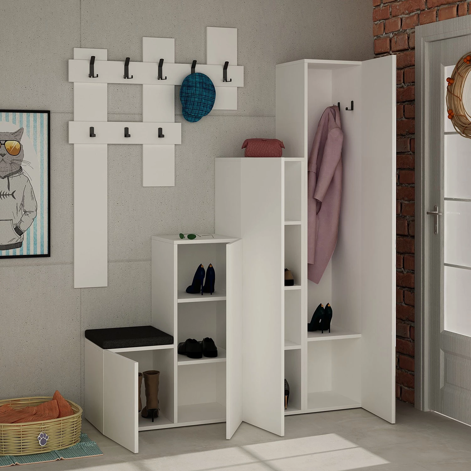 - Contenu de la livraison : Ensemble d’entrée comprenant 5 placards et 1 porte-manteau mural, sans accessoires