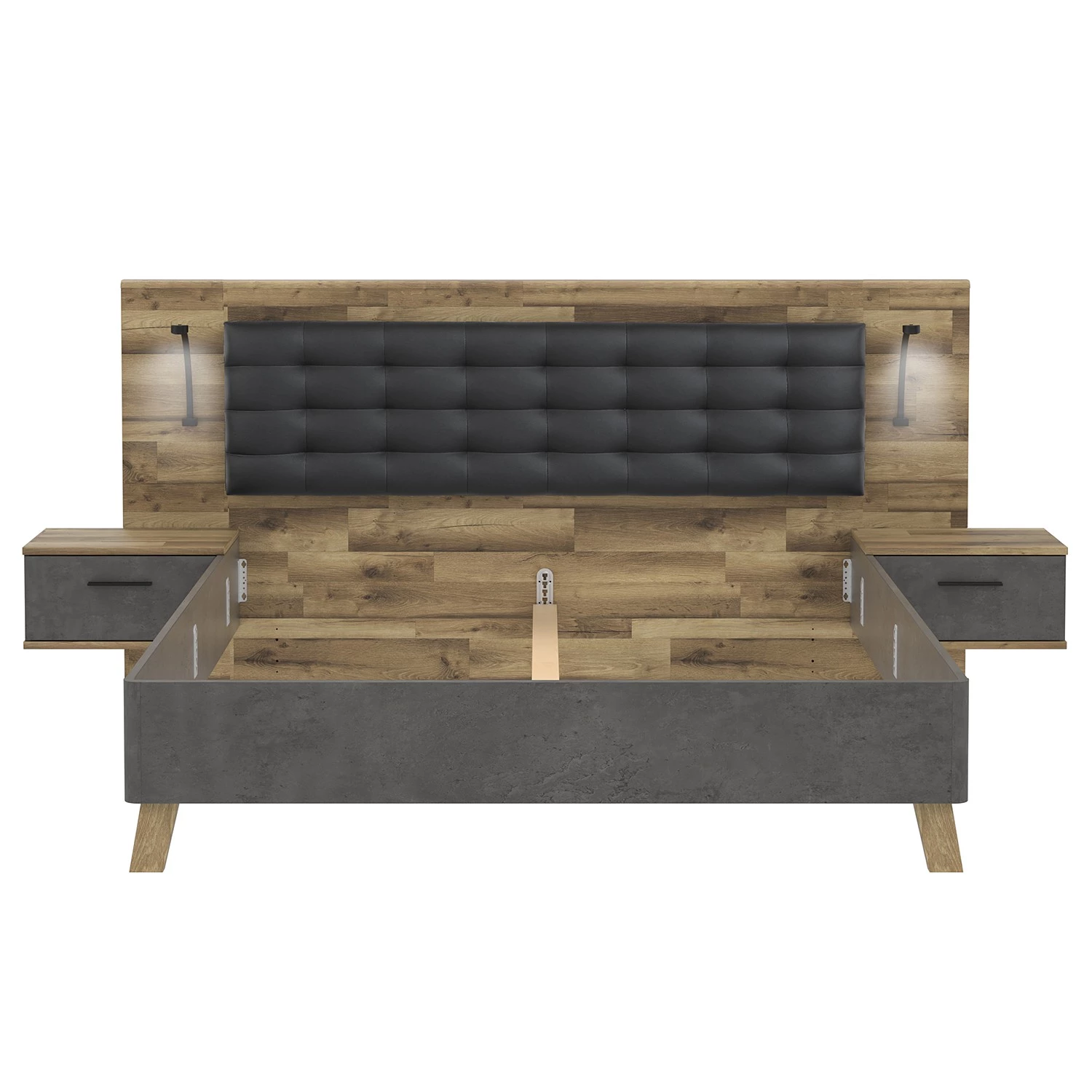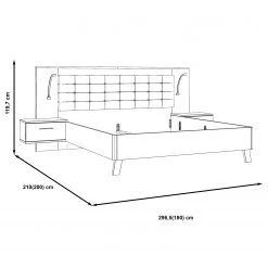 - Contenu de la livraison : Cadre de lit incluant 2 chevets et l’éclairage, sans accessoires