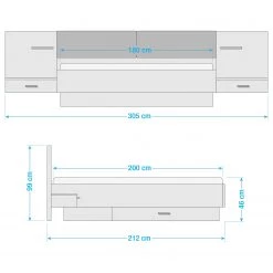 - Autres caractéristiques : Éclairage LED intégré 2 tiroirs de lit / Hauteur de couchage réglable sur 3 niveaux / Profondeur d’insertion : 18, 15, 12 cm