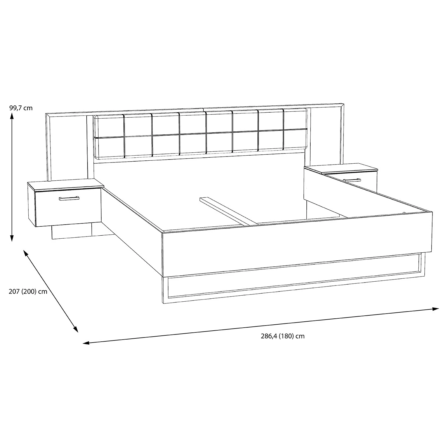 - Contenu de la livraison : Lit avec tĂŞte de lit et 2 tables de chevet, sans accessoires