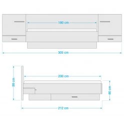 - Autres caractéristiques : Éclairage LED intégré 2 tiroirs de lit / Hauteur de couchage réglable sur 3 niveaux / Profondeur d’insertion : 18, 15, 12 cm