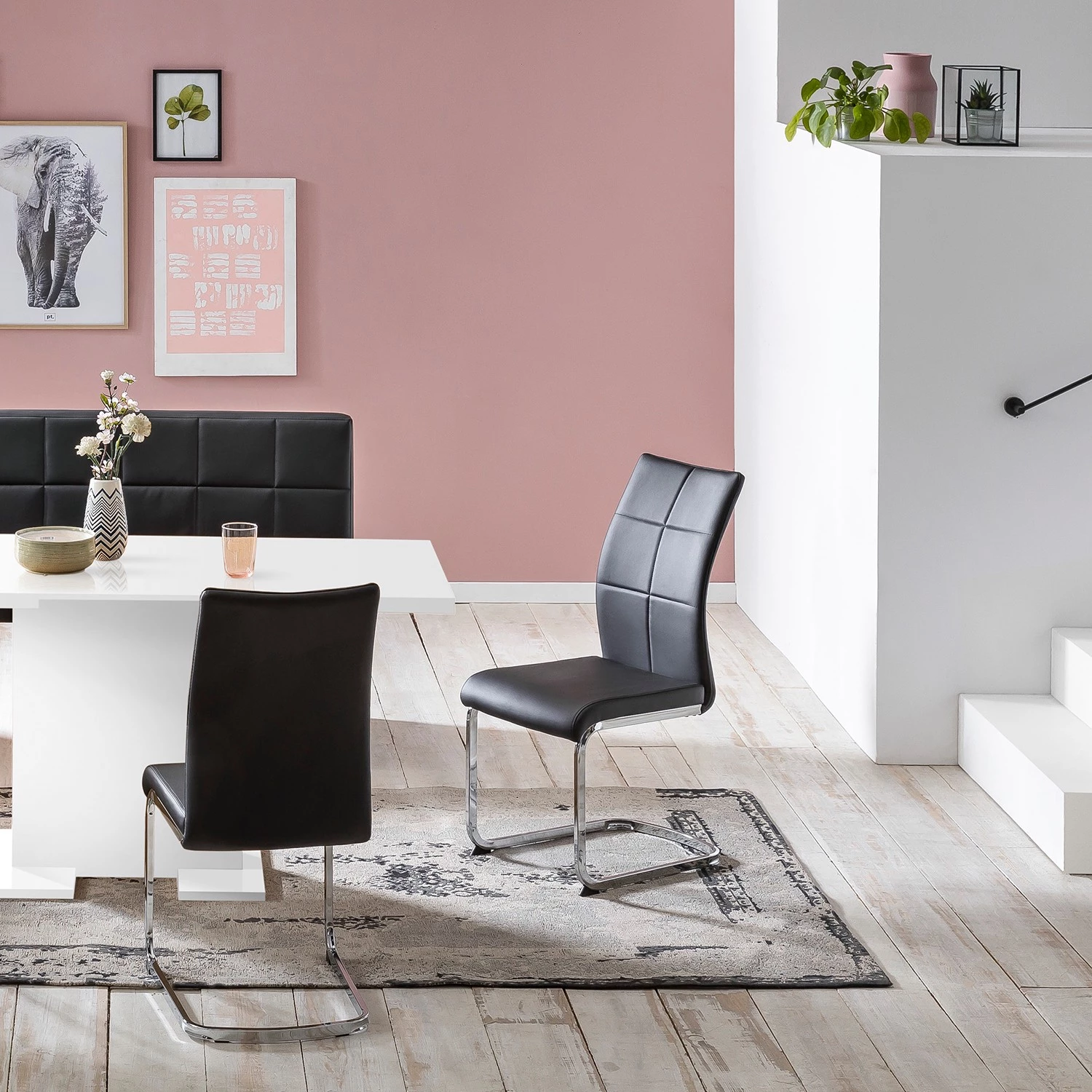 - Structure des chaises : acier chromé