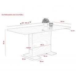 - Table : 120 – 160 x 76 x 80 cm