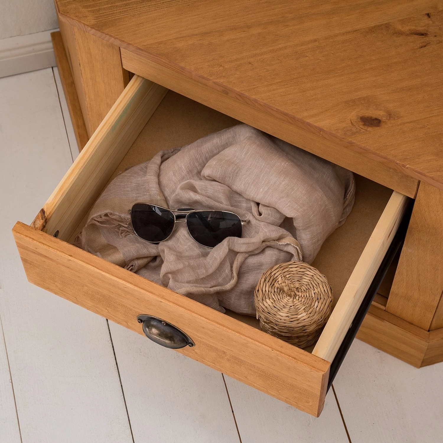 - Façade et corps : Pin massif ciré