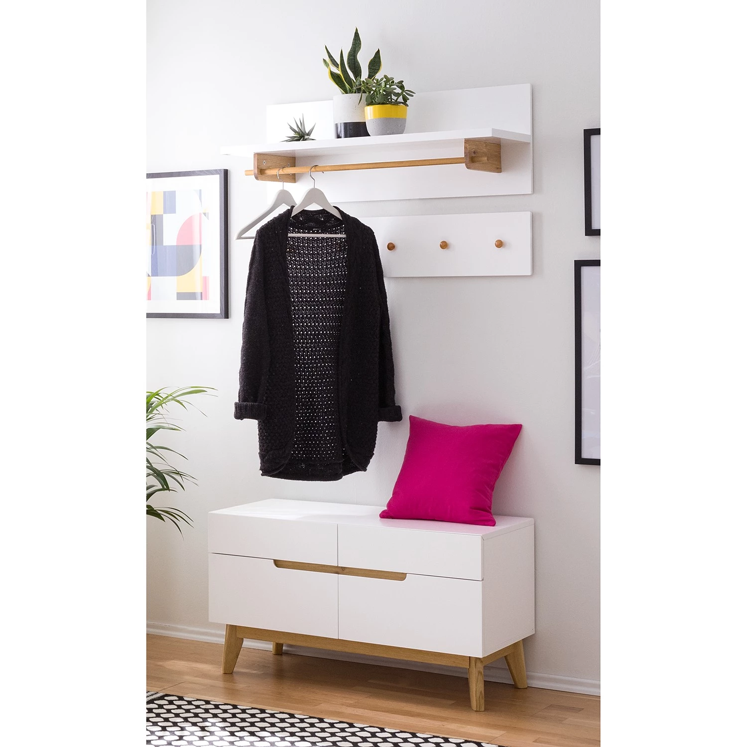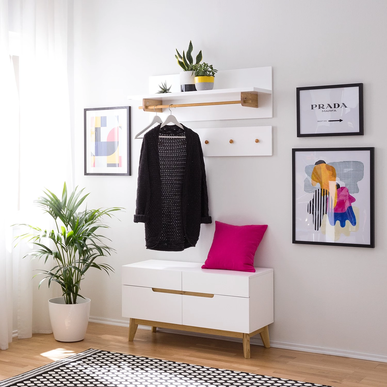 - Contenu de la livraison : 2 porte-manteaux muraux, 1 banc d’entrée, sans accessoires