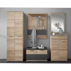 - Contenu de la livraison : 1 armoire, 1 porte-manteaux mural, 1 banc d’entrée, 1 miroir et 1 armoire à chaussures, sans accessoires