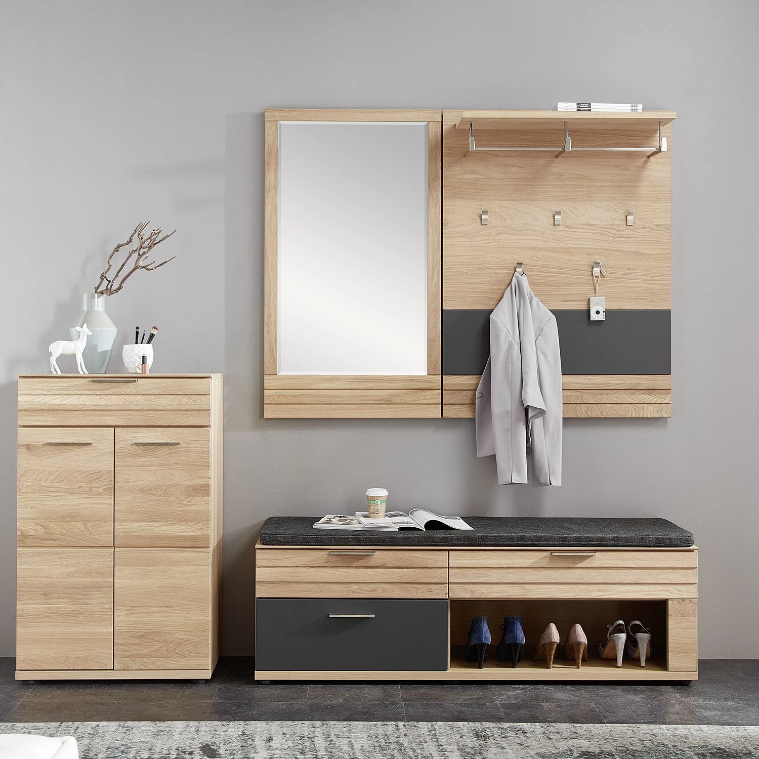 - Contenu de la livraison : 1 armoire à chaussures, 1 miroir, 1 porte-manteaux mural et 1 banc d’entrée, sans accessoires