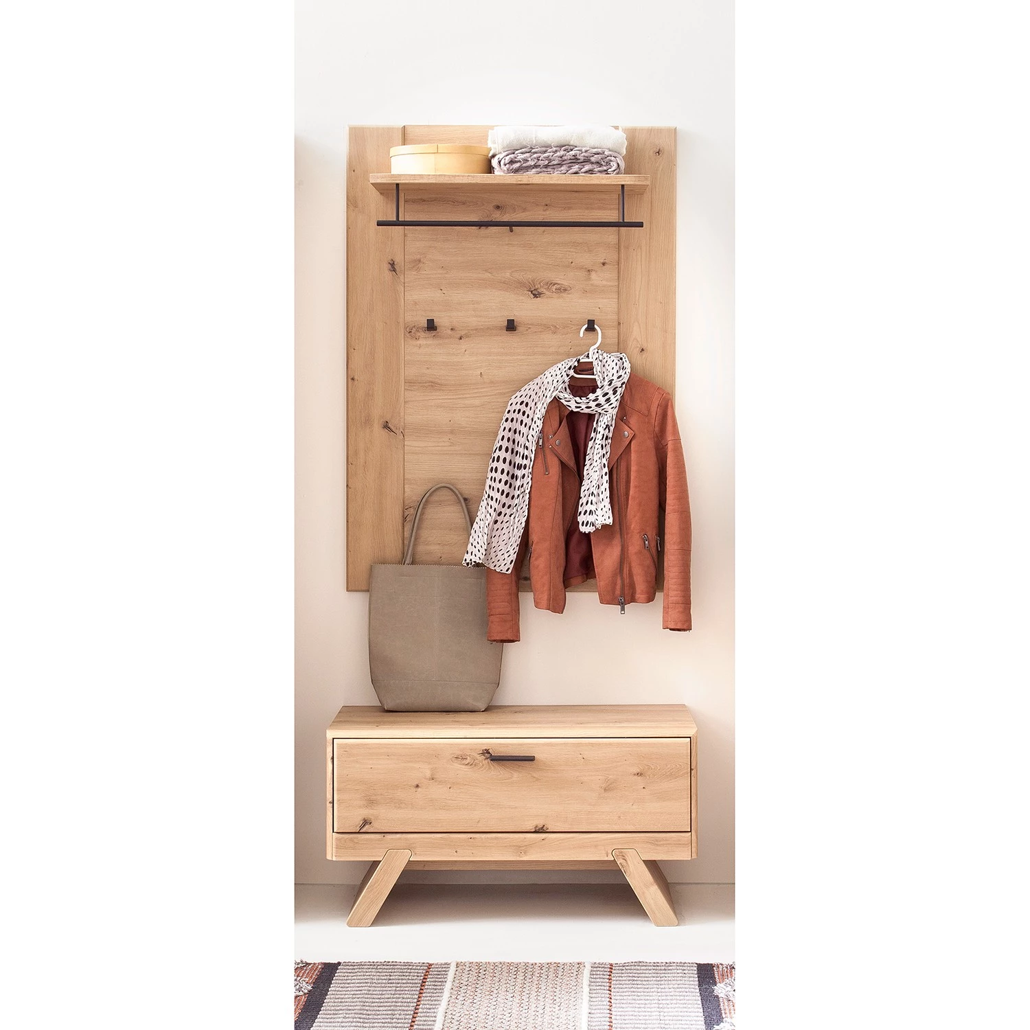 - Contenu de la livraison : Ensemble d’entrée comprenant 1 banc avec coussin et 1 porte-manteau mural, sans accessoires