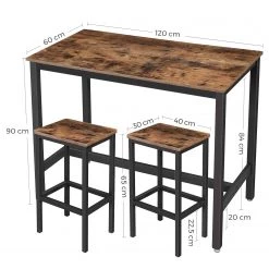 - Contenu de la livraison : Ensembe de salle à manger comprenant 1 table haute et 2 chaises de bar