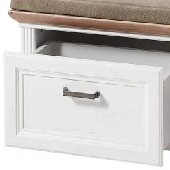 - Contenu de la livraison : 1 armoire d’entrée, 1 porte-manteaux mural, 1 banc d’entrée avec coussin, 1 miroir et 1 commode, sans accessoires