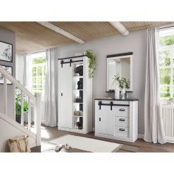 - Contenu de la livraison : Ensemble d’entrée comprenant 1 miroir, 1 armoire et 1 buffet, sans accessoires