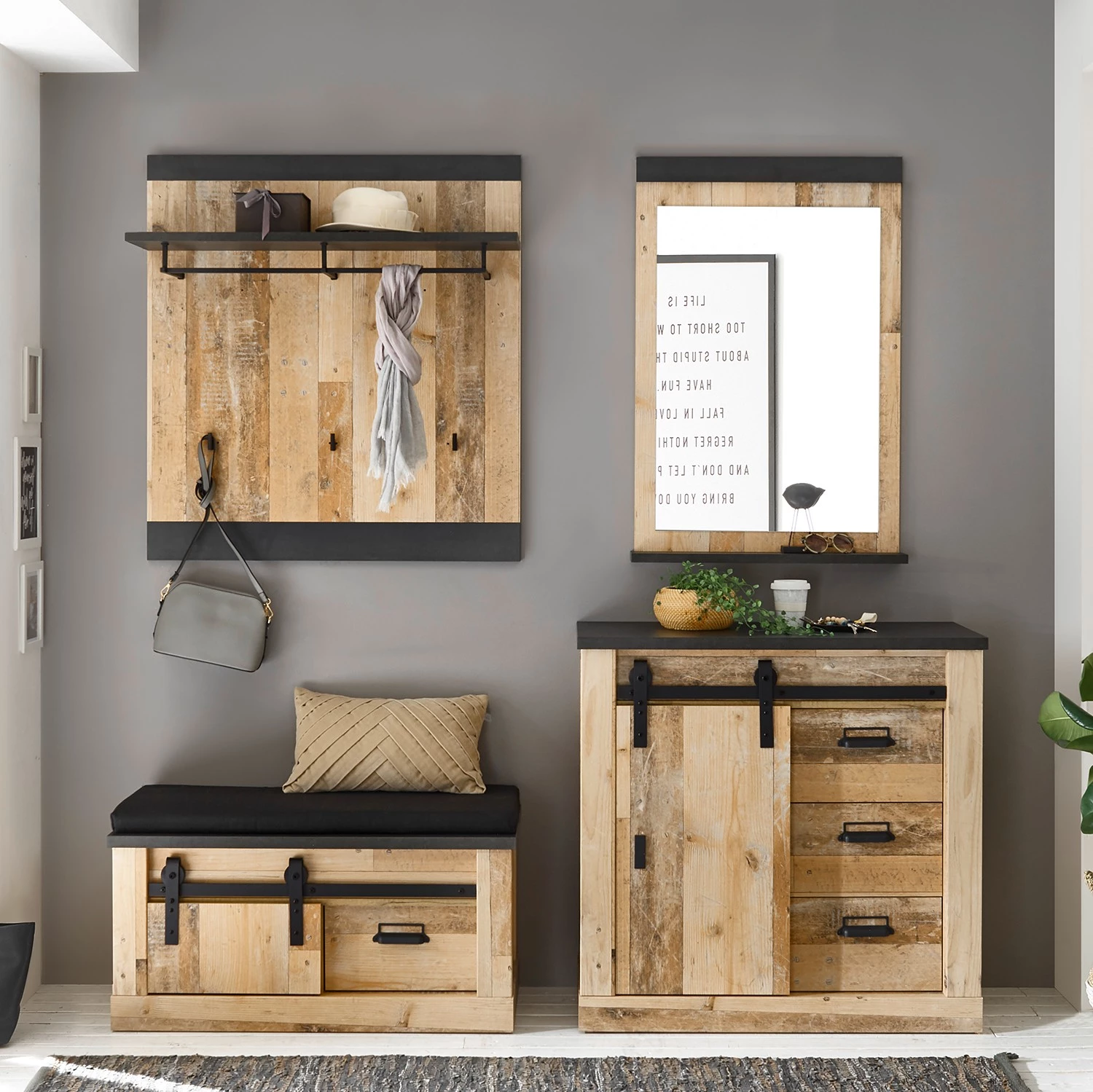 - Contenu de la livraison : Ensemble d’entrée comprenant 1 porte-manteau mural, 1 miroir, 1 buffet et 1 banc avec coussin, sans accessoires