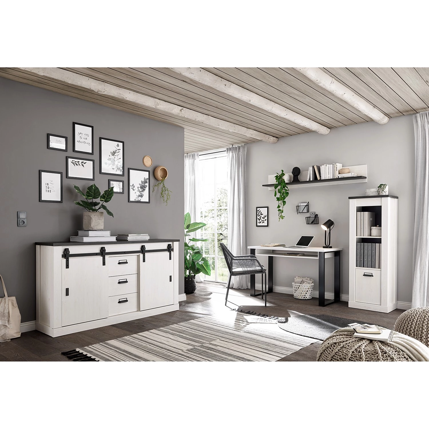 - Contenu de la livraison : Ensemble de bureau composé de 1 étagère, 1 tablette murale, 1 enfilade et 1 bureau, sans accessoires