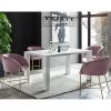 - Contenu de la livraison : Ensemble de salle à manger comprenant 1 table (extensible), 1 banc d’angle (avec coffre) et 2 chaises