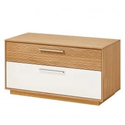 - Façade de tiroir, plateau de dessus et du fond : chêne massif verni