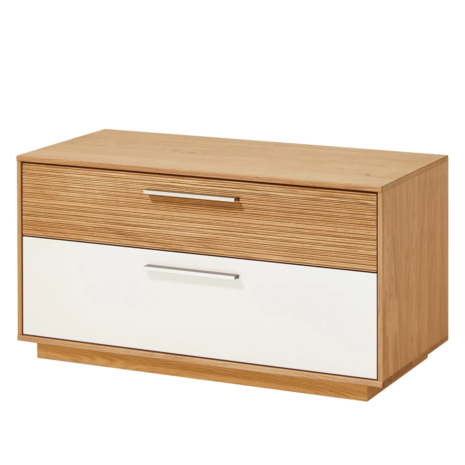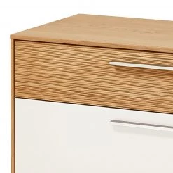 - Façade de tiroir, plateau de dessus et du fond : chêne massif verni