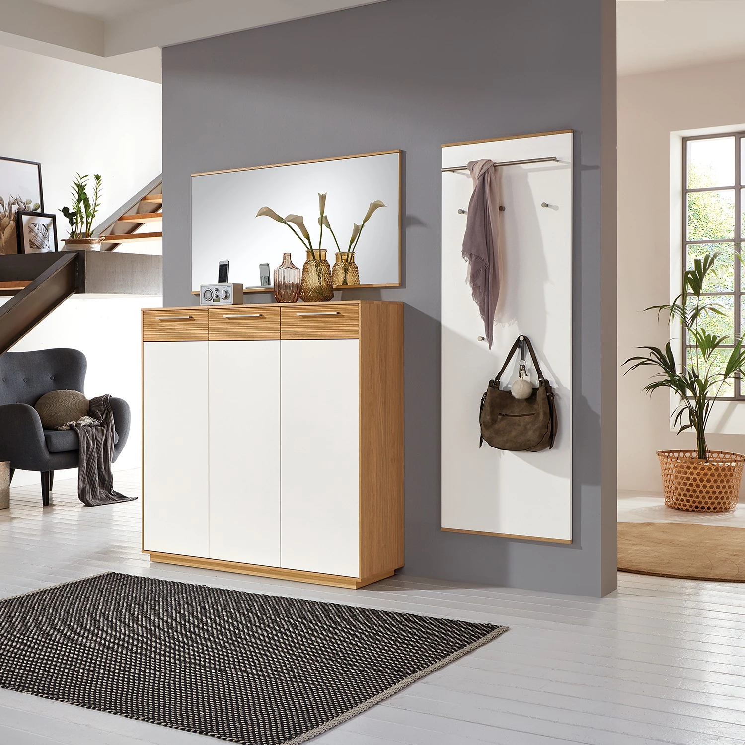 - Contenu de la livraison : 1 miroir, 1 meuble à chaussures et 1 porte-manteaux mural, sans accessoires
