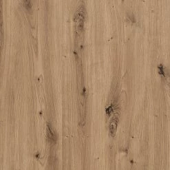 - Corps : Imitation chêne artisan, éléments décoratifs acier brut